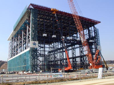 Overall view of experiment building under construction