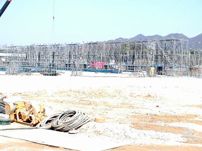 Scaffolding of hydraulic unit building