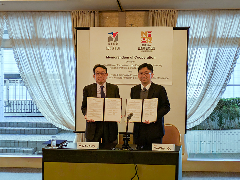 中埜 良昭 兵庫耐震工学研究センター長と、Yu-Chen Ou, NCREEセンター長による協力覚書締結式の様子