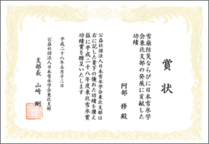 - 雪崩防災ならびに日本雪氷学会東北支部の発展に貢献した功績