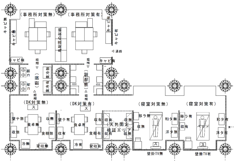 図4 1シリーズの配置計画(医療施設を再現)次に、3月の2シリーズ(実験日3/13、17、19)では、オフィス空間、住居空間を再現する計画としています(図5)。