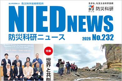 - 年4回発行のA4/20ページ程度の小冊子「防災科研ニュース」をPDFでご覧いただけます(無料)。研究成果や各分野の取り組み、各種イベントの報告など防災科学技術の情報をお届けします。