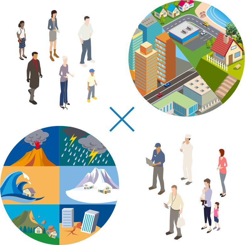 万が一災害が起きたときに適切な行動をとるためには、今後起こる可能性のある災害で、自分がどのような影響を受けるのかをあらかじめ知り、事前に備えておくことが大切です。YOU@RISKは、災害時のリスクに対して、何を知り、どのように行動するべきなのか、学びの機会を提供する情報プロダクツです。